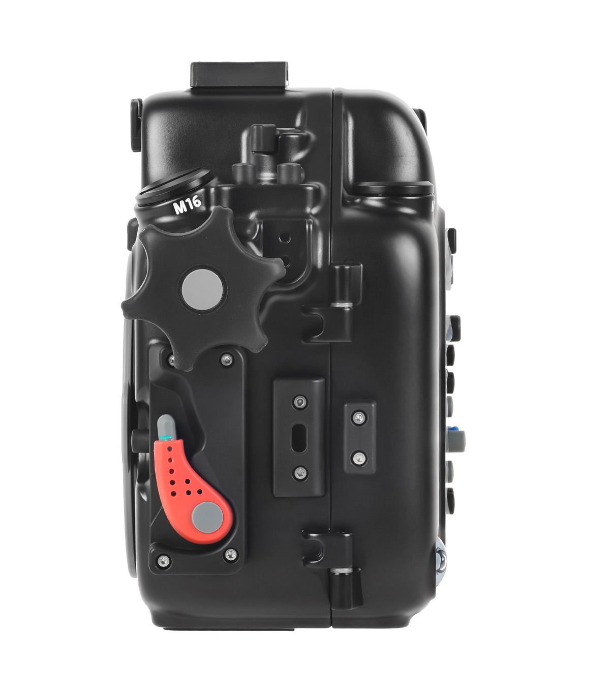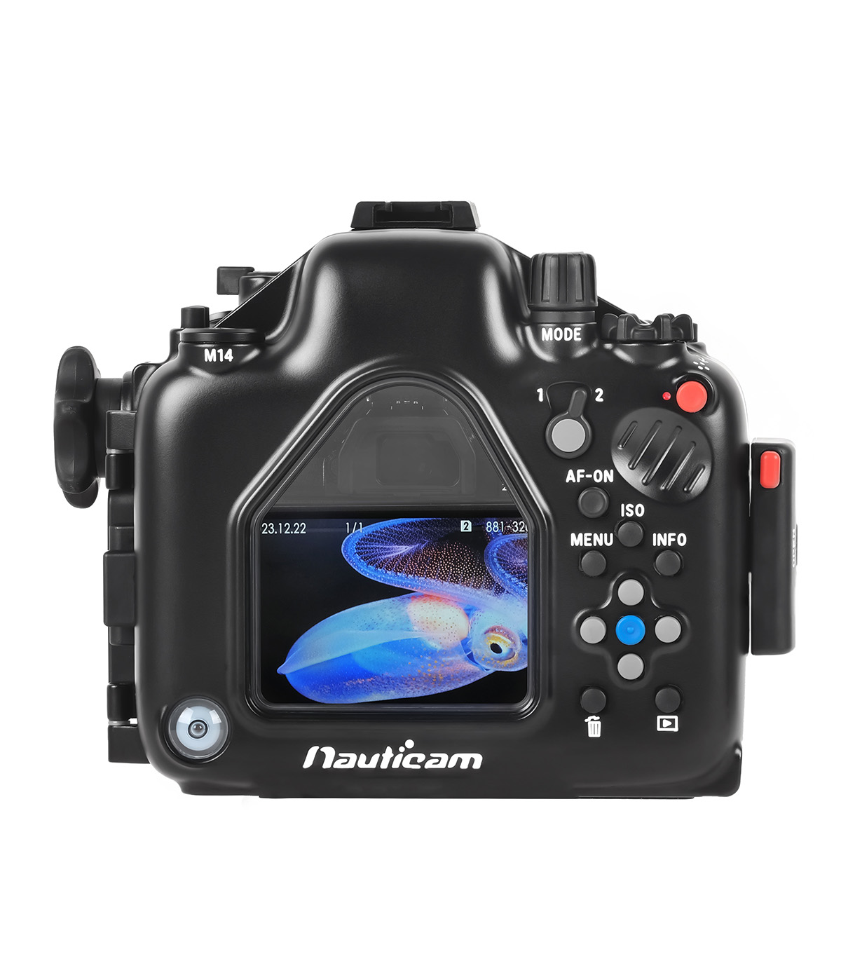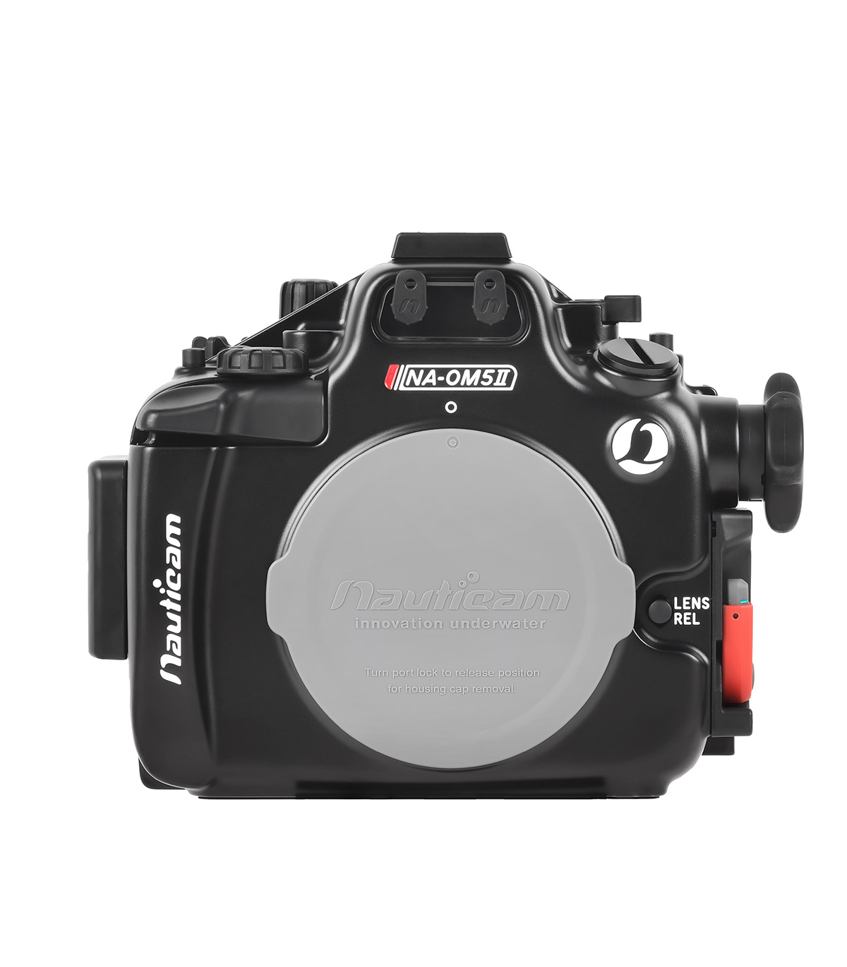 La NA-OM5II se adhiere a la filosofía "Mission Control" de Nauticam, asegurando un control accesible e intuitivo para funciones cruciales. Estas incluyen los diales Frontal y Trasero, REC, AF-ON, CP, Fn1 y la palanca Fn2. El sistema de bloqueo de puertos de Nauticam facilita cambios de lentes rápidos. El reemplazo de la batería y la tarjeta de memoria es igual de sencillo gracias al sistema de bloqueo de carcasa giratorio y al botón de liberación del objetivo. Una válvula de vacío M14 opcional desbloquea todas las capacidades del sistema de detección de fugas y verificación de vacío preinstalado. La ventana LCD de la NA-OM5II, disponible como una accesorio opcional, permite la utilización de los visores de fotograma completo de Nauticam para una visualización mejorada.