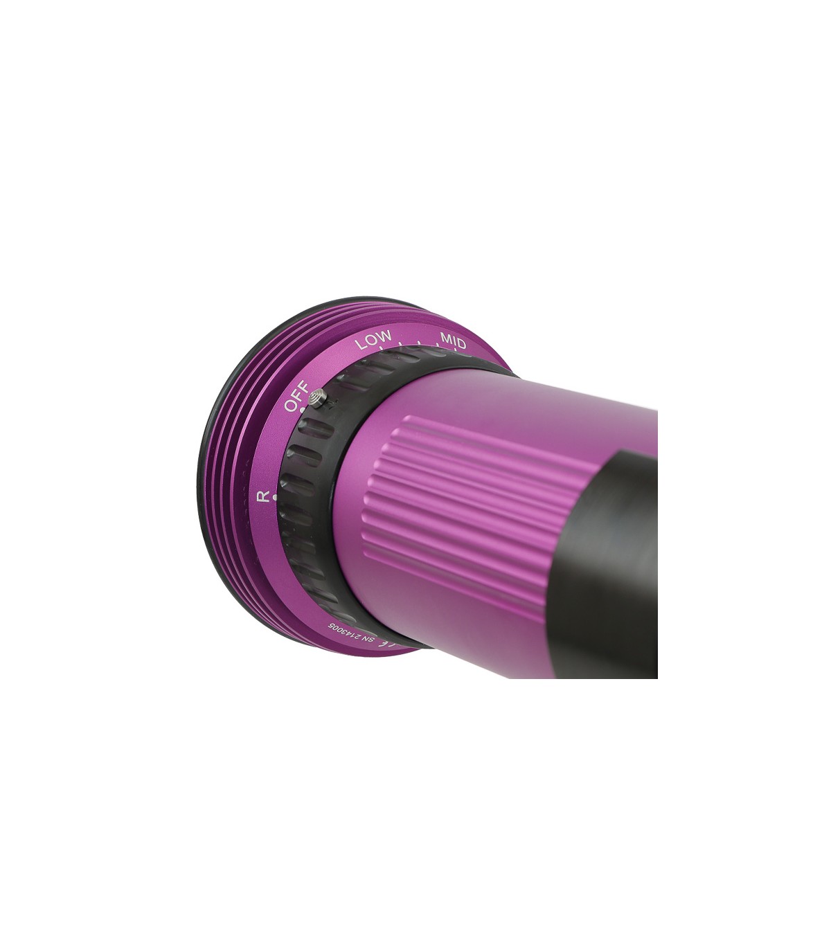 La luz utiliza un reflector cuidadosamente diseñado y una lente tipo cúpula para lograr un haz muy amplio y suave, sin motas ni puntos calientes.4 El ángulo del haz (ancho completo, mitad de máximo) es de 110° en el agua (120° en el aire).