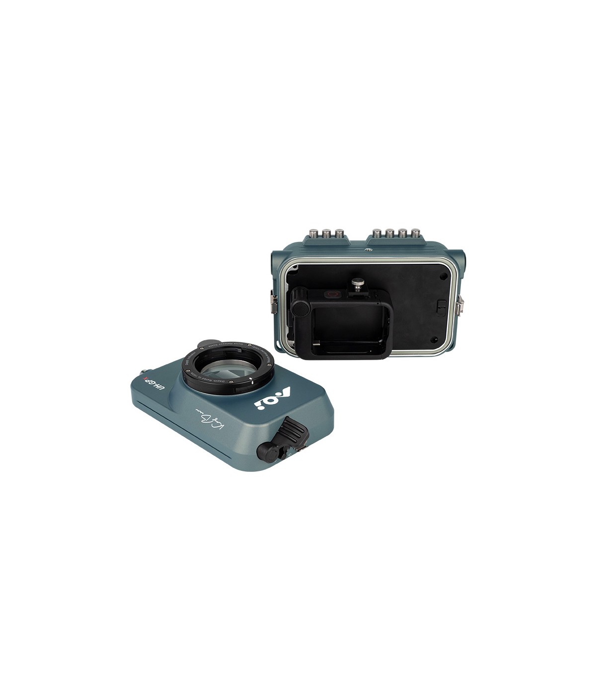 El frontal de la caja viene con el sistema de bayoneta QRS-02 de AOi integrado para la instalación de lentes compatibles como la UWL-03 o la UCL-03 (compatible con lentes INON para GoPro SD).