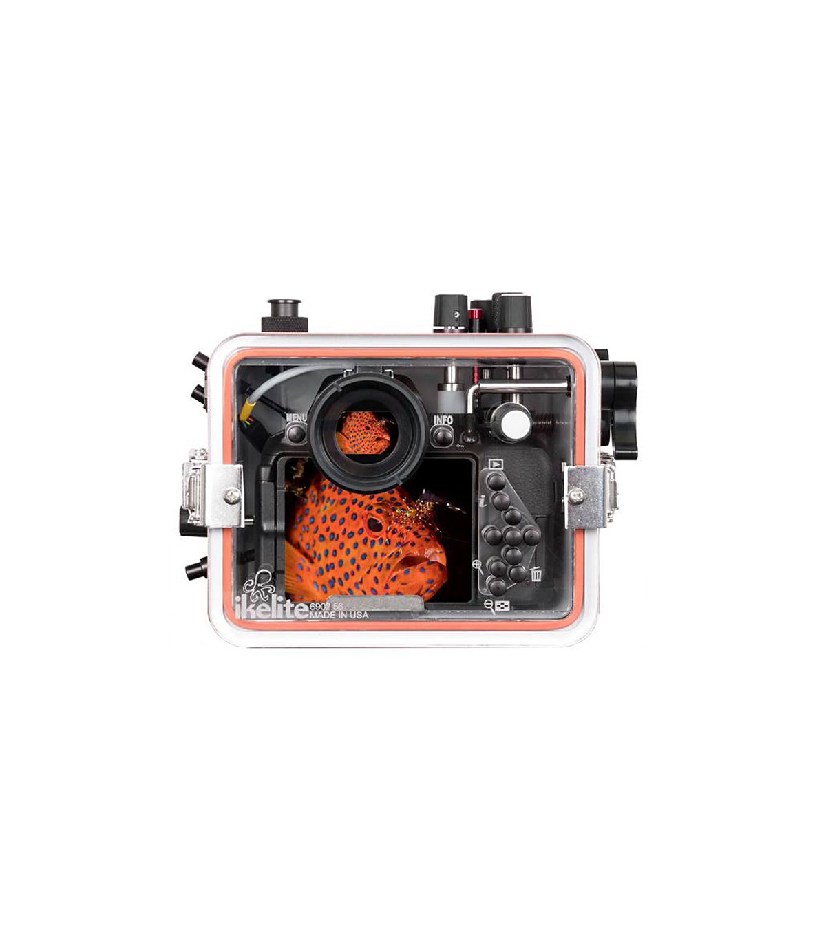 Una carcasa duradera y con todas las funciones para las cámaras Nikon D5500 y D5600. Adecuado para buceo, snorkel, surf, piscina y cualquier aplicación dentro o alrededor del agua.