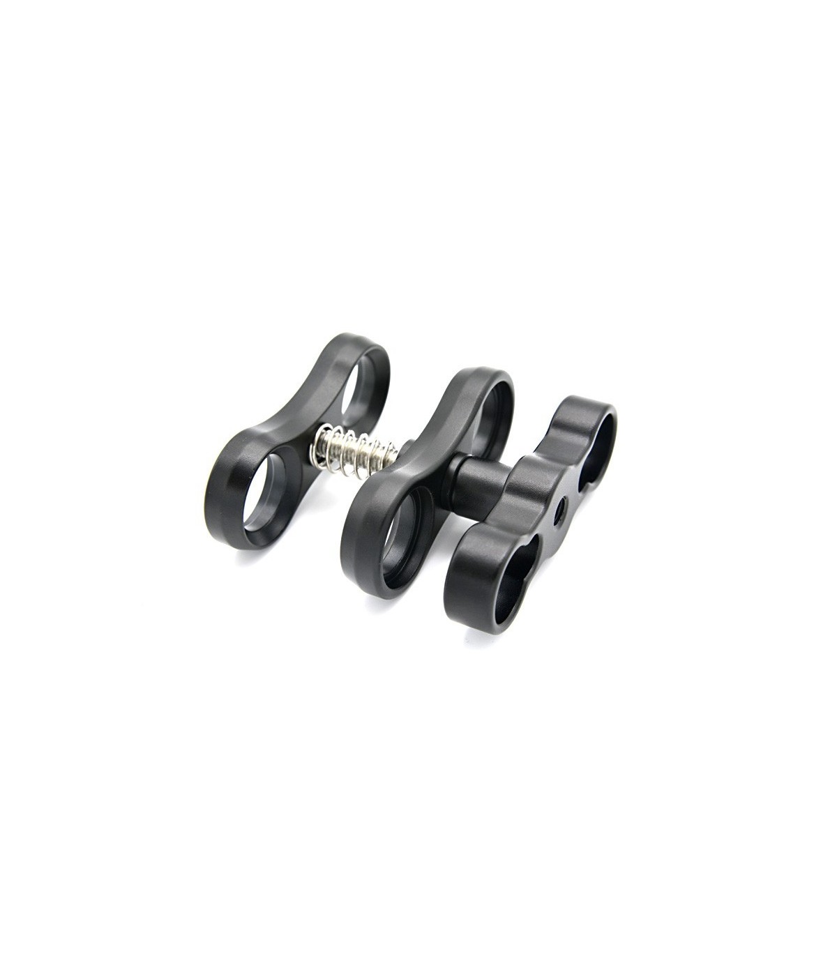 El set incluye base con doble mango ajustable a diferentes anchos de carcasas ya sean de uno o dos tornillos con fijación rosca trípode, dos rótulas, un segmento a elegir entre 8" (20cm), 6"(15cm) y 4" (10cm), Flash Focotore GTM en color negro y cable de fibra óptica con conectores Sea&Sea.