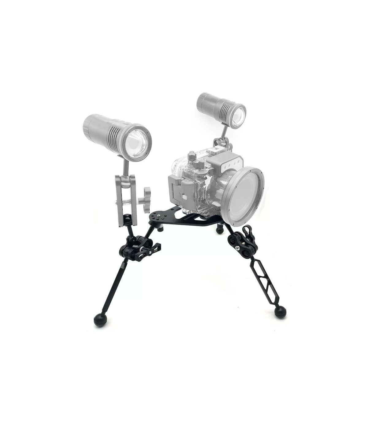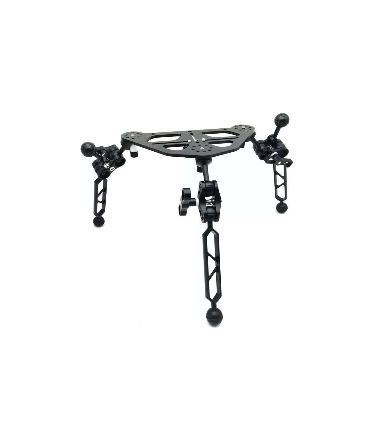 Base trípode para uso subacuático con patas de aluminio de 6" y rótulas para adaptarse al fondo marino.