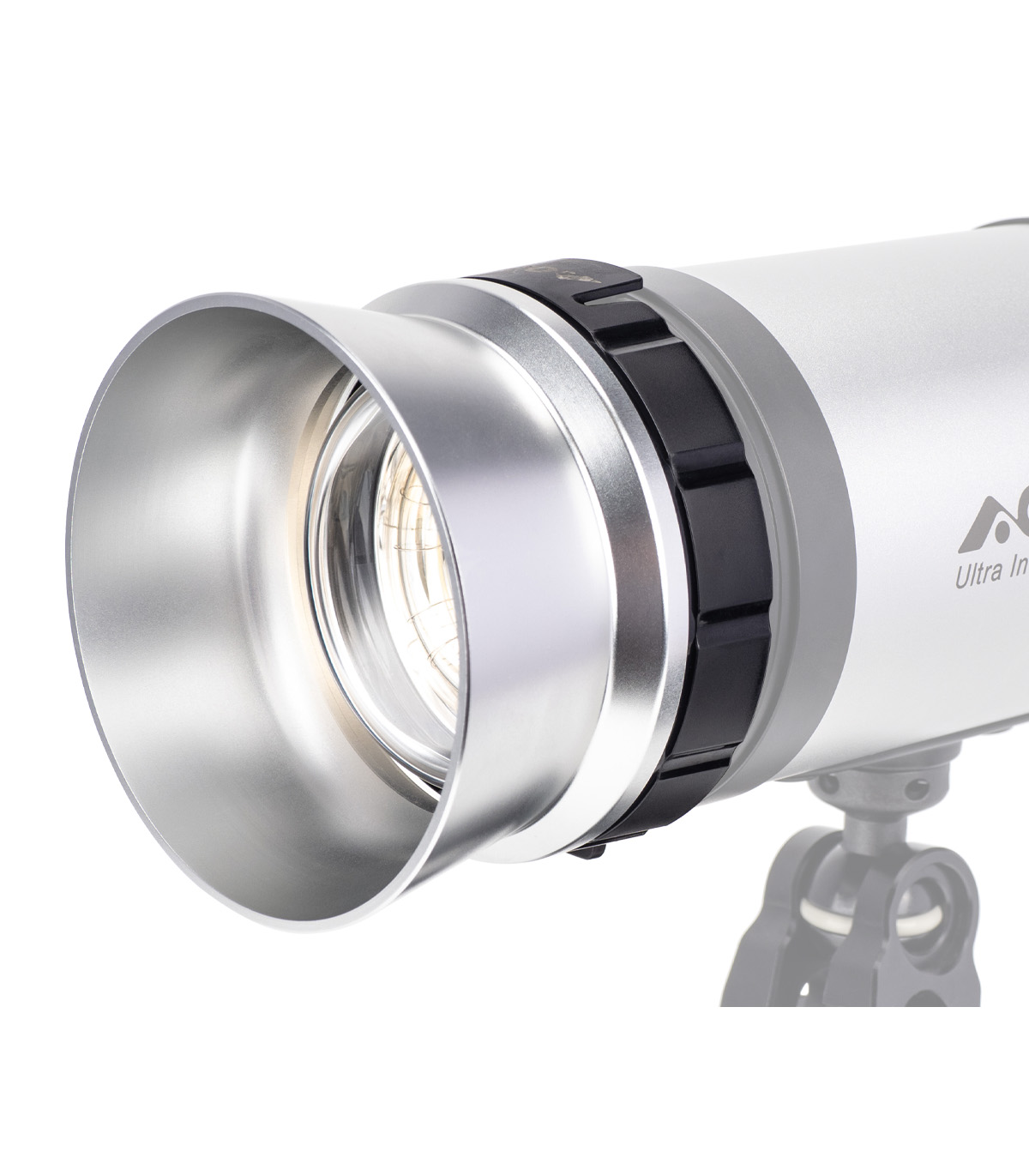 Con el concentrador de AOi consigues pasas el ángulo de tu UIS-P1 de 150º a 85º consiguiendo un aumento del número guía 1.8x.