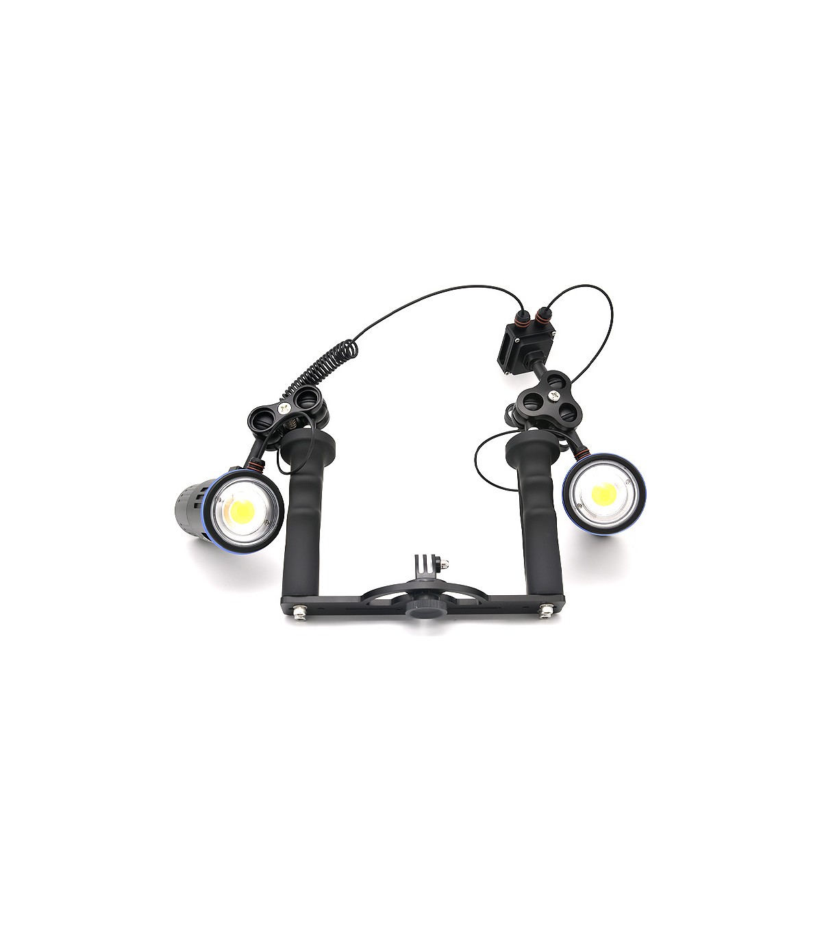 11200 Lumens Set for action cameras with two Scubalamp V3Kv3 lights, remote control set and tray with double handle