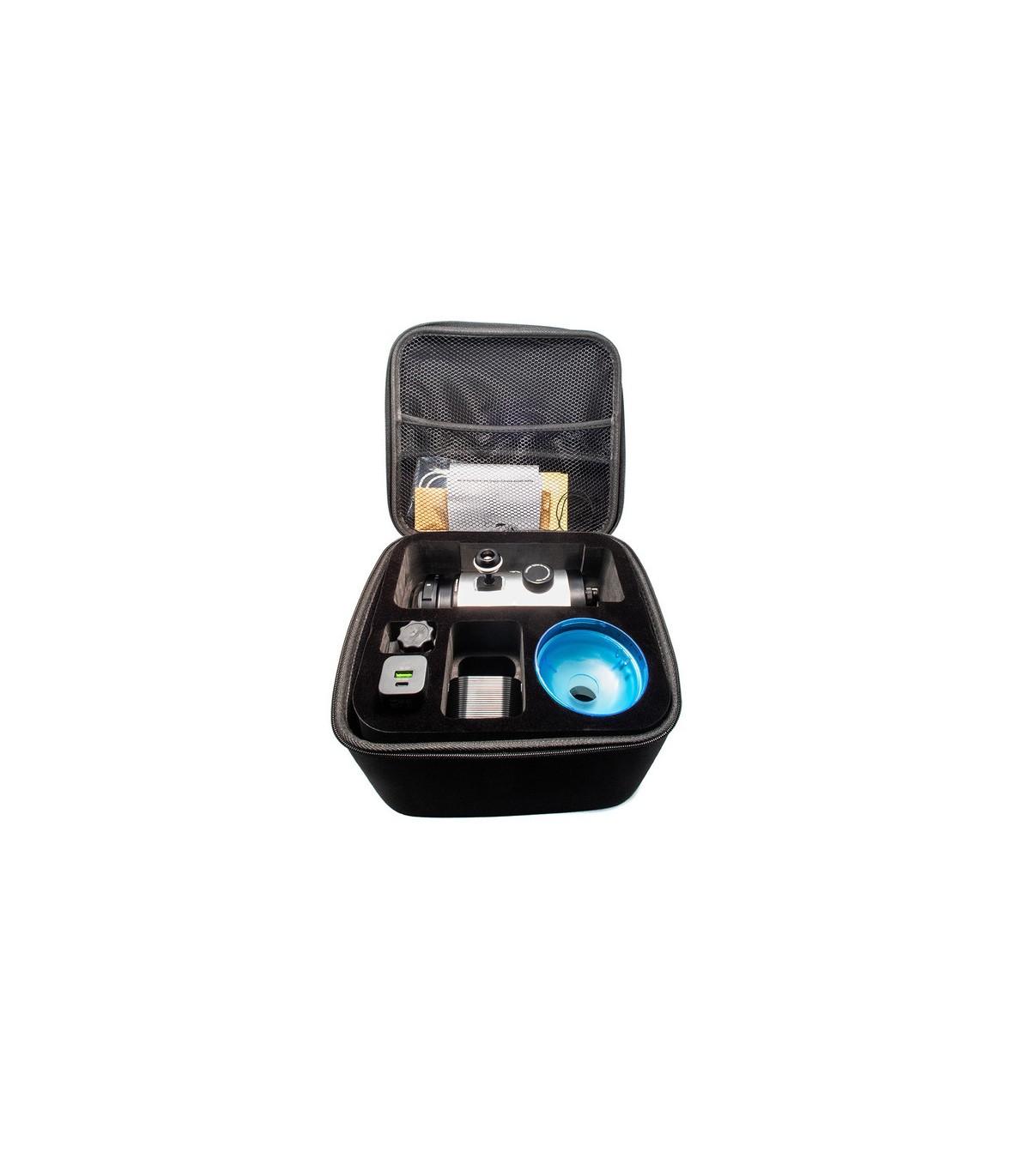 Includes: Padded nylon case, battery, charger, ball adapter, YS adapter, white and blue diffuser.